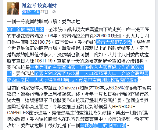 回覆 歸休:委內瑞拉IBC指數十年漲幅逾60000%...