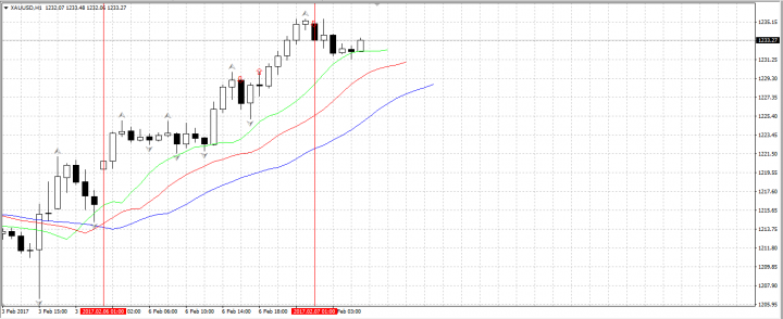 昨日現貨黃金開市價為1219.95 開市時更是以跳開的形式去開盤 這先說明了多頭非常強勢 之後更不用說 受著上星期五的數據影響和特朗普上台後一系列激進措施震驚市場 導致全球的投資者都共同擁入避險资產 大幅推升黃金、白銀,以及國債等避險資產價格