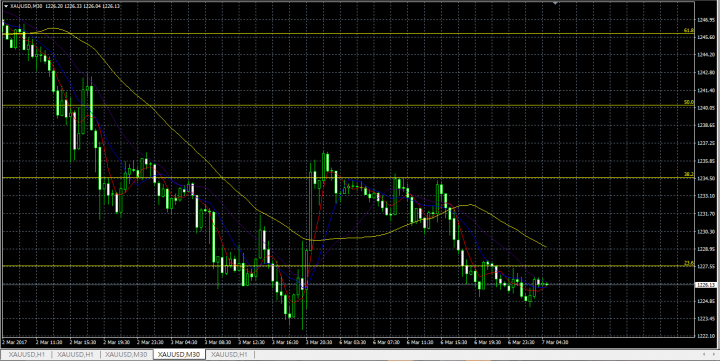 昨日現貨黃金的開市價為1233其後黃金再陷入盤狀態 在上下及下午均在1234-1231來回波動 到了晚上美國市場開盤後 投資者受上星期六的耶倫講話影響 受3月的加息“能是合適的 受這番說話影響 投資者紛紛拋售黃金 令到黃金急跌 最低見1225 其後反彈無力 最終收市價同樣報1225 雖說,接下來美聯儲加息與否成為了市場最為關注的事件 但是朝鮮發射導彈、中國下調GDP預期、美國總統特朗普指責奧巴馬在總統大選前竊聽、法國總統候選人菲永麻煩不斷,所有所有這些因素均提高了短期內市場對黃金的避險買盤 預料黄金的跌勢受到限制