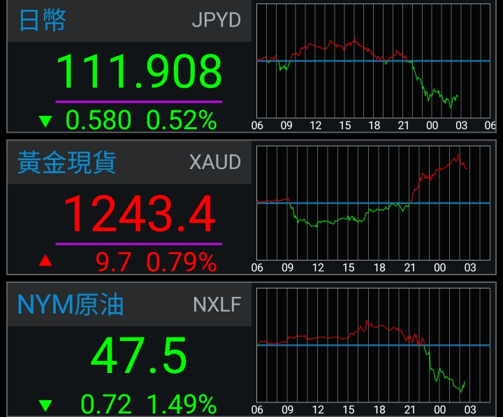 下圖是昨天美元.日幣.黃金.石油走勢圖