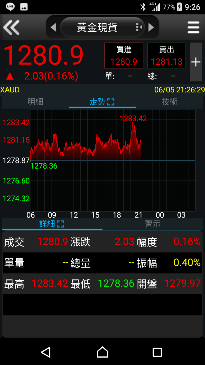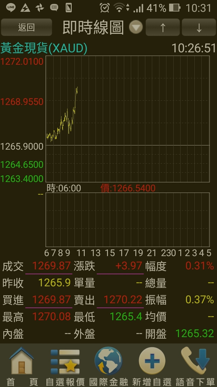已經上漲 到了近期高點 1283美元了 黄金 加油 加油 加油~