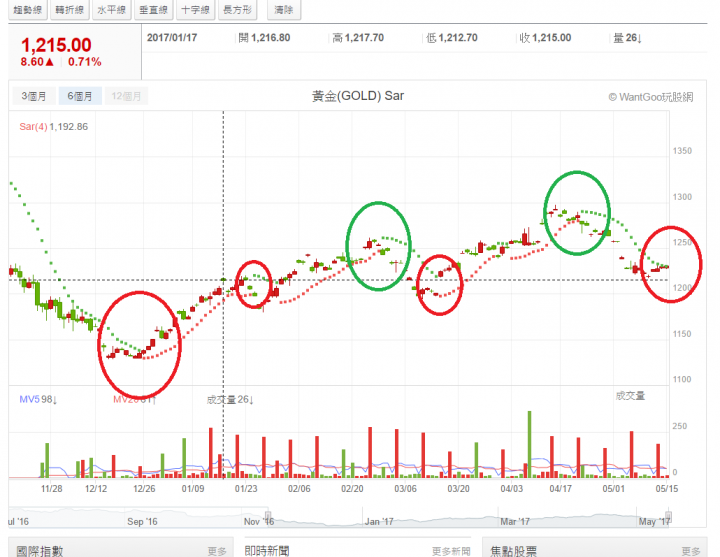 SAR指標,發生了很重要的轉折變化,綠色的指標點已經接觸到價格囉