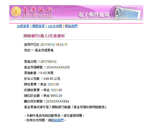 請教大大:如果我也買了相同數量的黃金;折讓價銀行會自動去算出折讓價給我呢?還是我要跑一趟銀行叫他折讓給我.這點我就不太了解可否告之,謝謝