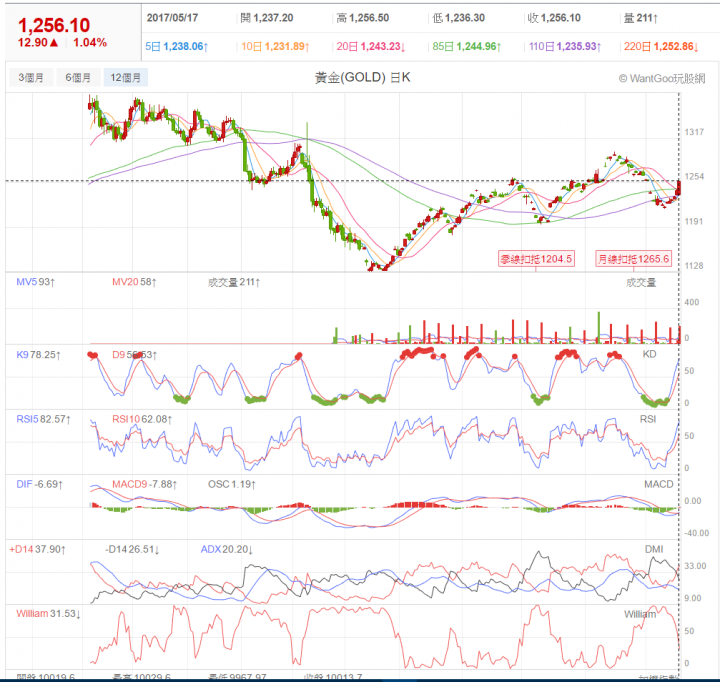 然後,金價就回歸原來的1217,點一下再上去上禮拜的1225了。