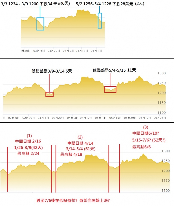 第3格:抓出最高跟最低天數,找出中間點,預測第3波漲跌最低點,可能在7/6跌至最低後盤整數