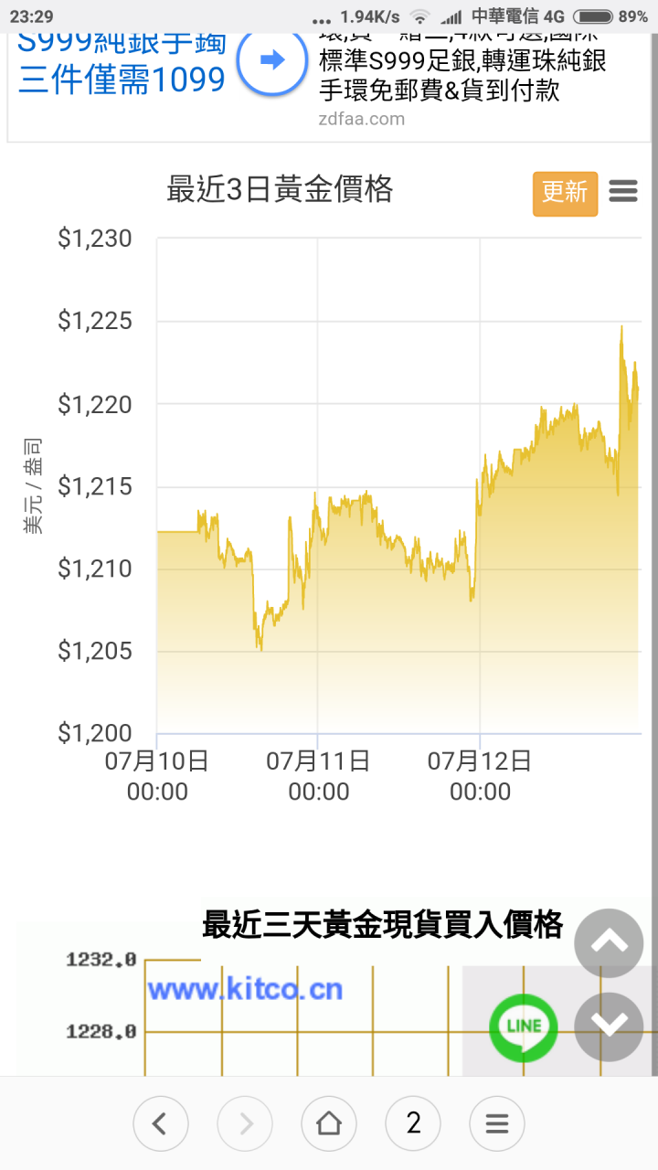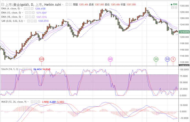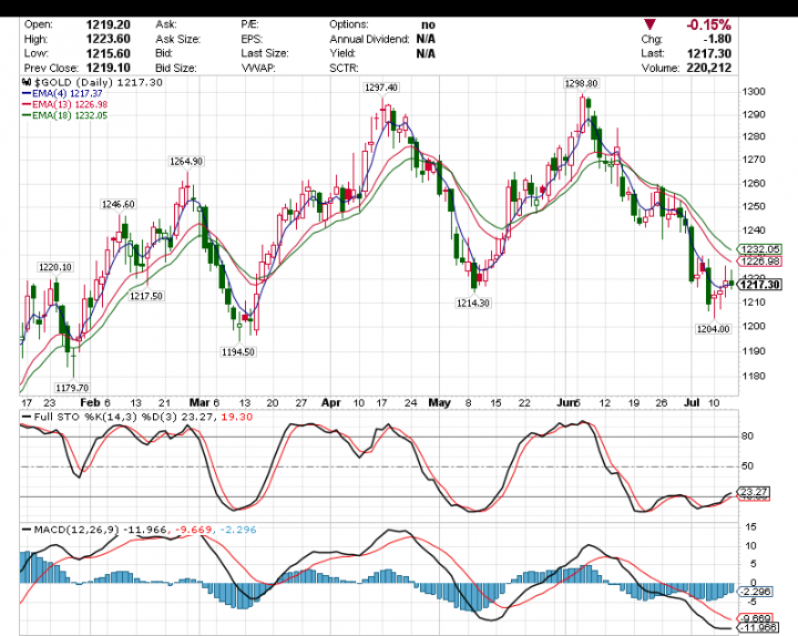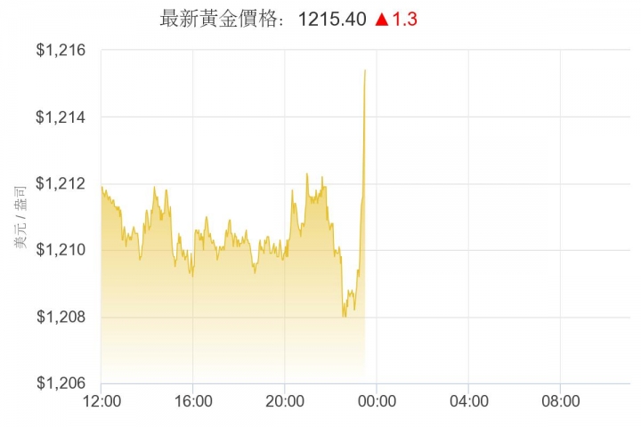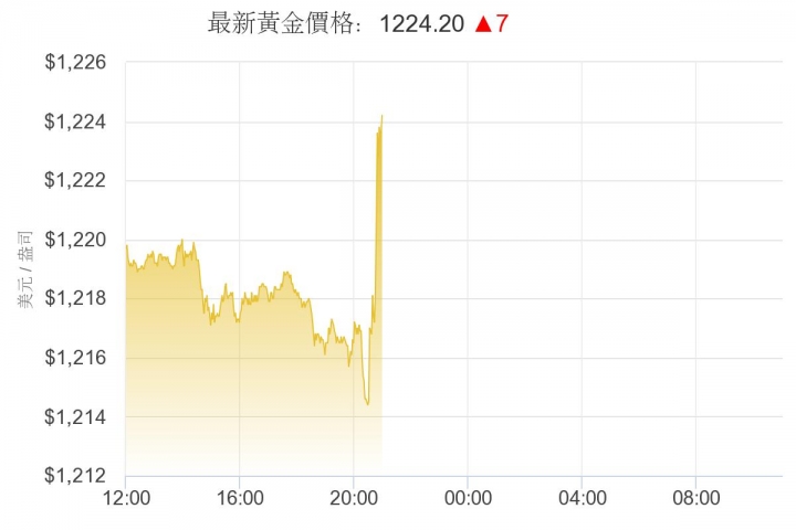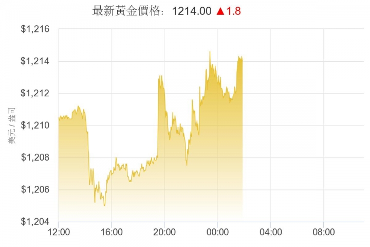 今日黃金大盤出現的最低價格為1204美元/盎司(瞬間出現),