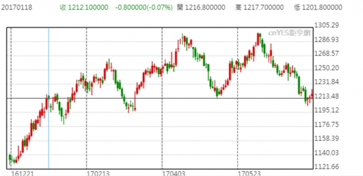【如果黃金大盤跌5美元時,則台黃緊跌3元,美黃則跌5元】