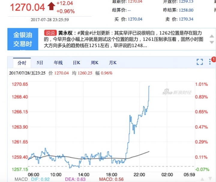 回覆 金贊:黃金大盤開始往上衝了,以經由1264拉到...