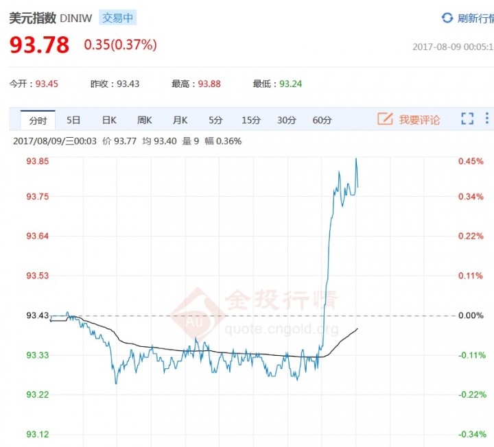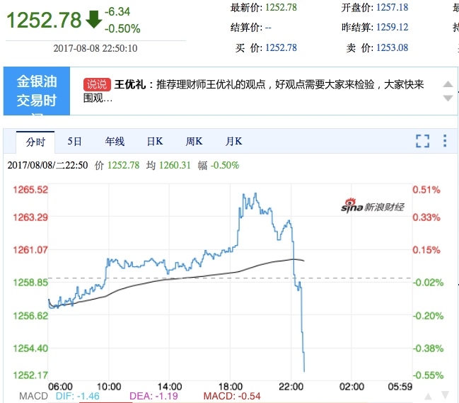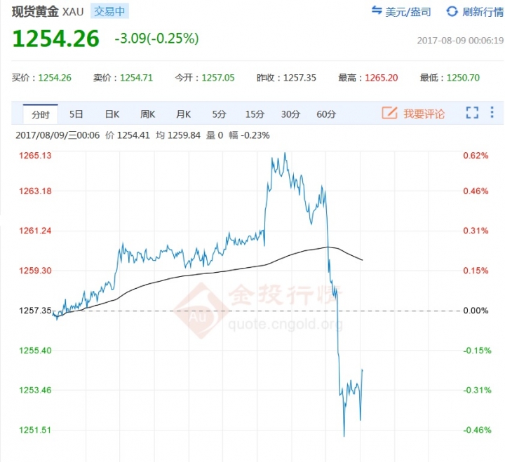 鑑於此,美元短線拉漲逾40點,而國際現貨金價在數據公佈後下跌超過10美元,一度穿破100日均線,最低觸及7月26日以來的最低點1251.46美元。