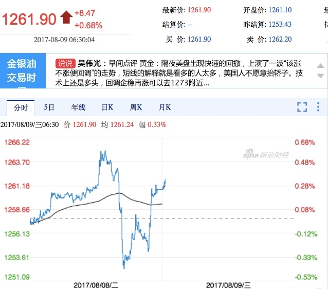 8月9日亞市盤初,黃金在1259.7美元/盎司和1267美元/盎司之間窄幅震盪,目前在1266.5美元/盎司附近徘徊。黃金總體上看處於通道整理,多空交織,但多方動能稍強,在沒有突破通道之前,高拋低吸為主。