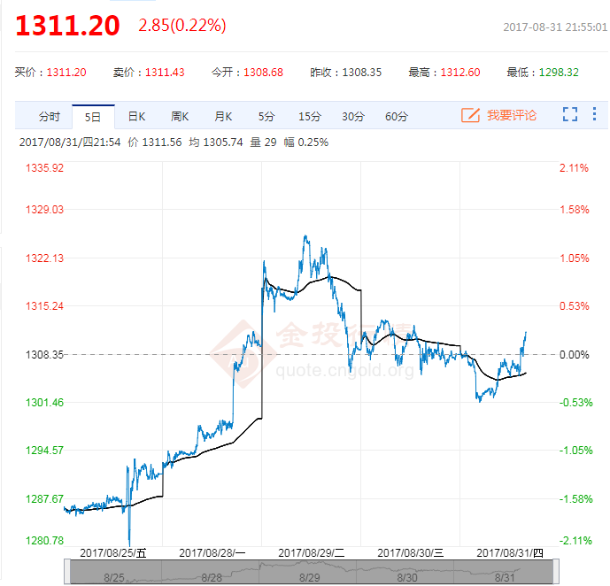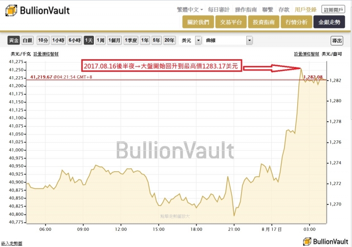 現在時間點的大盤價1276美元,(2017.08.10~10:06)