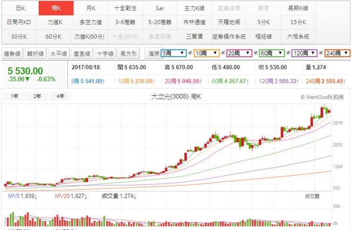 大家點出台灣的股票市場加權指數的日K線圖出來看看!