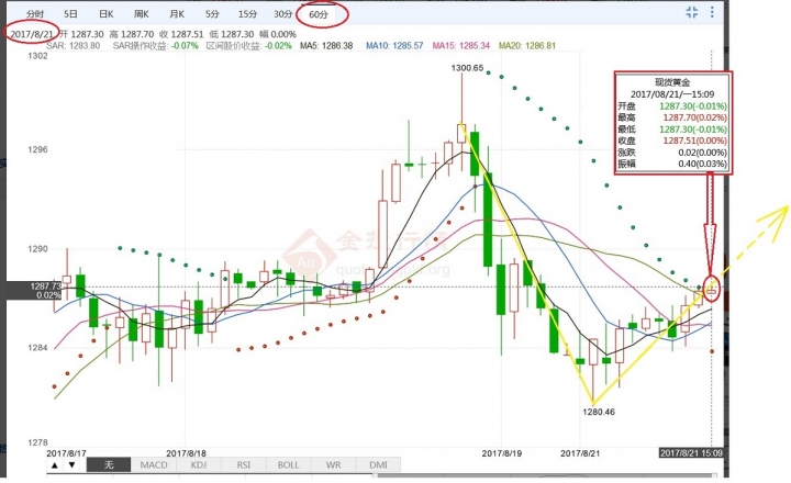 1265美元這個價→應該是大盤還是活盤之時的低價。