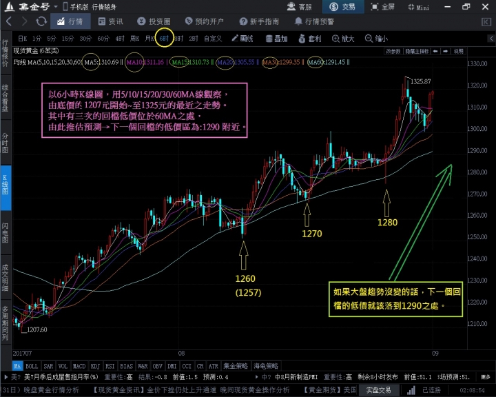 黃金大盤如能回檔至1265美元,則可以試看看進場,