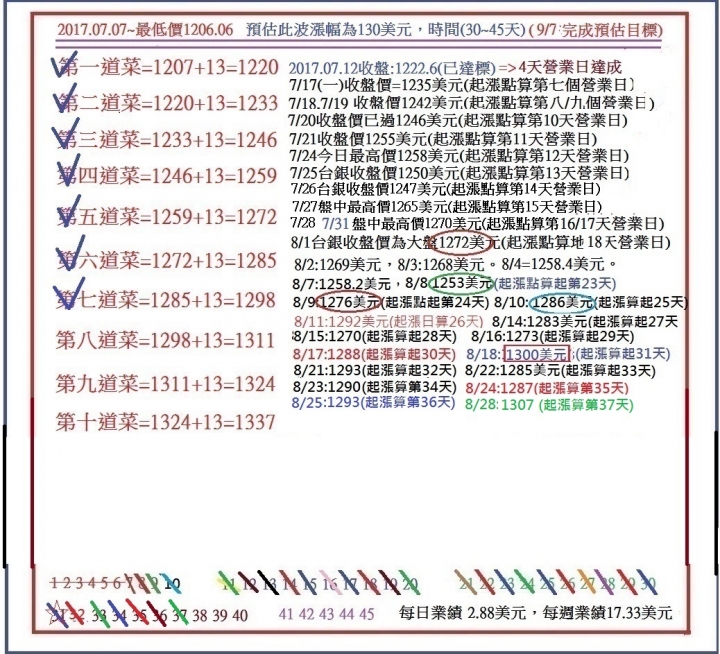 我一個多月前就已經給學員們訂下此波段的業績目標=1337每元/盎司。