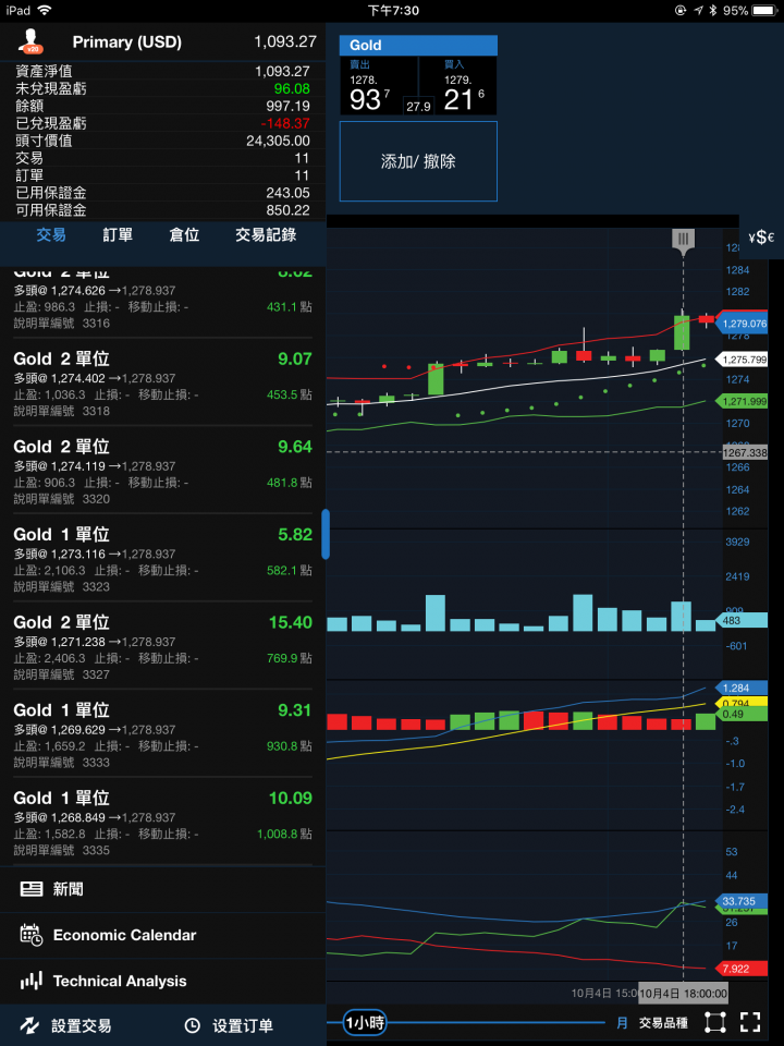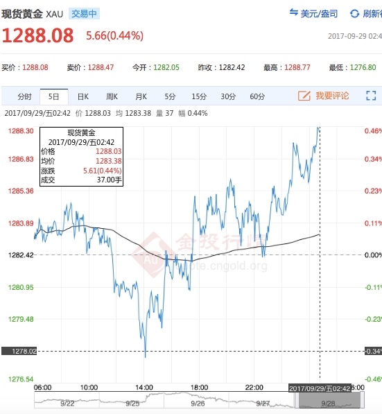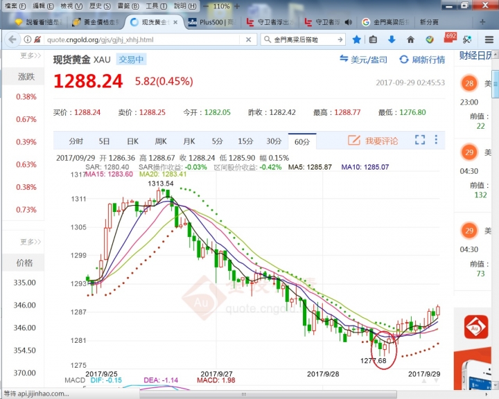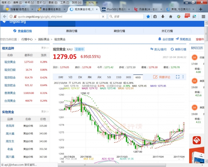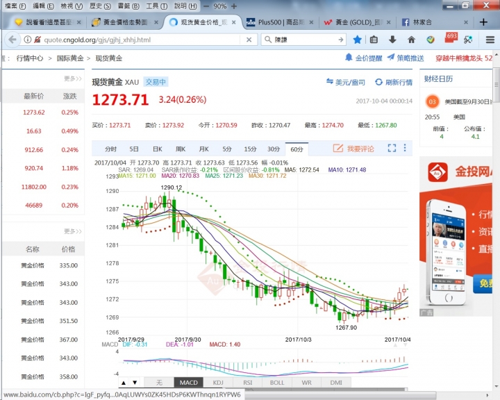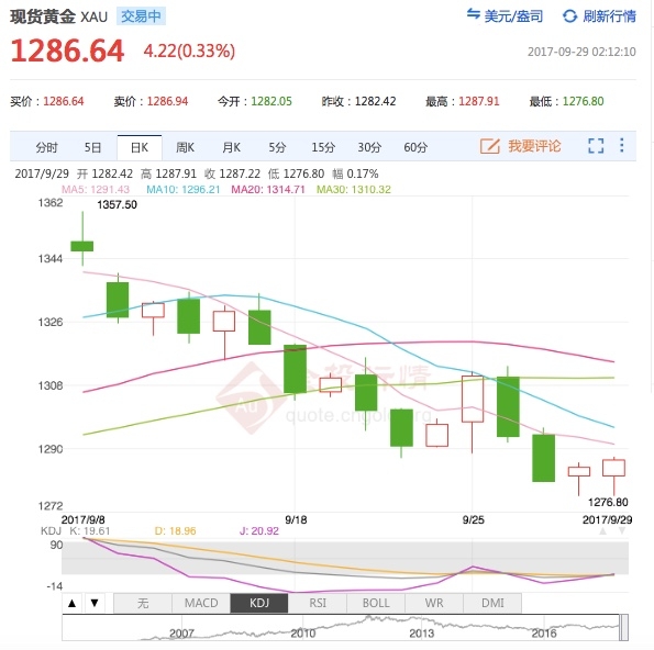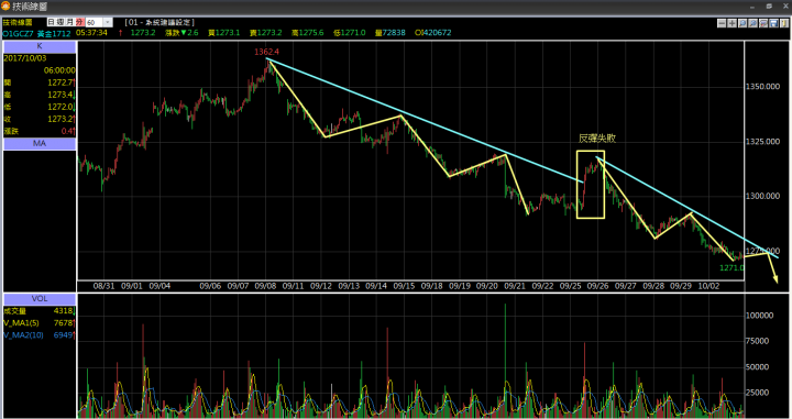 金盤最高價1357美元翻轉直下至今10/3(二)的1267.80美元,