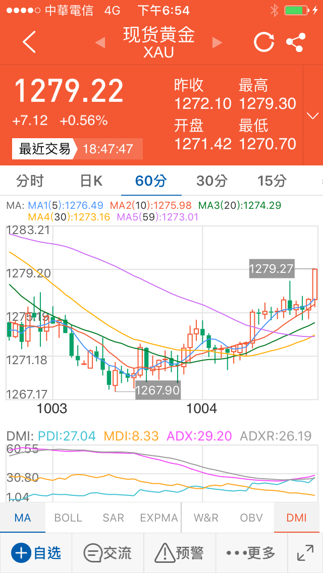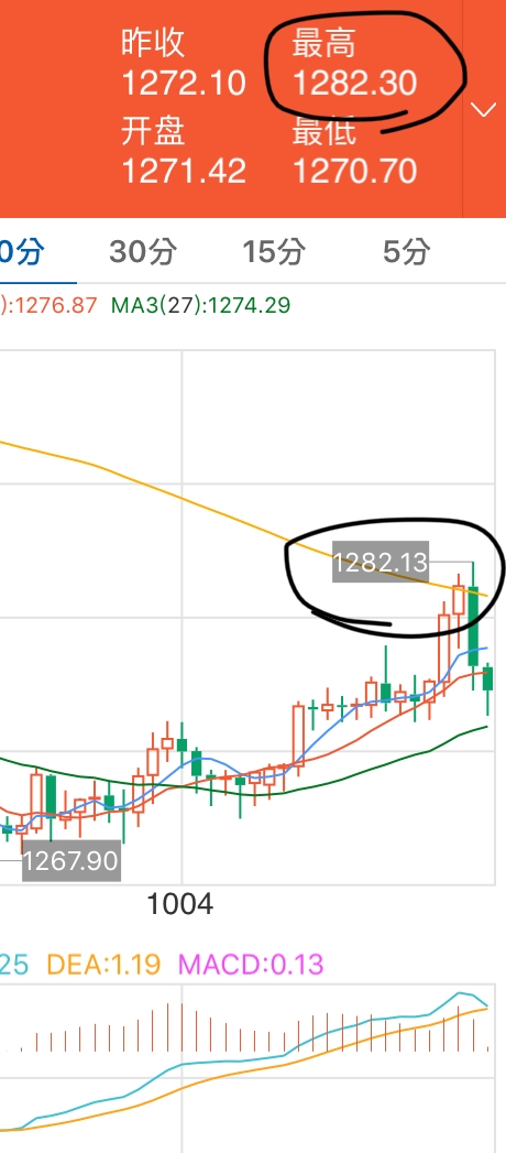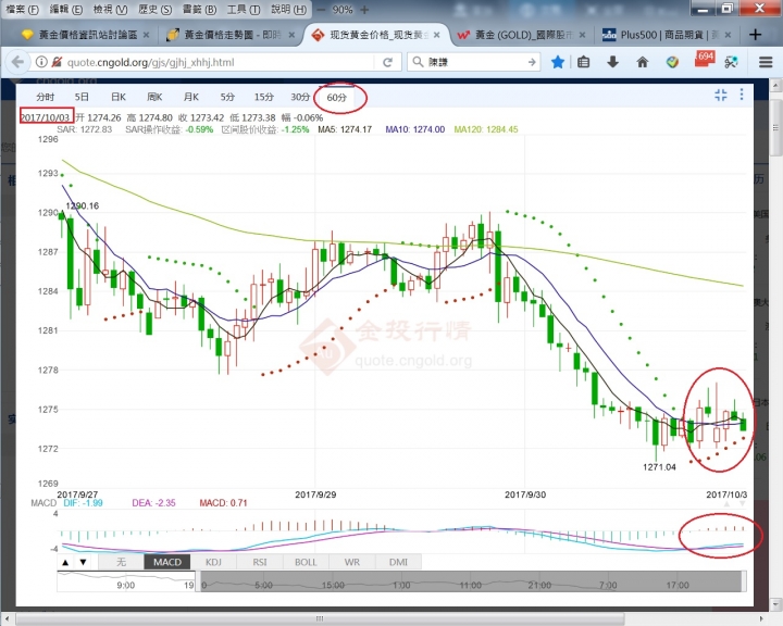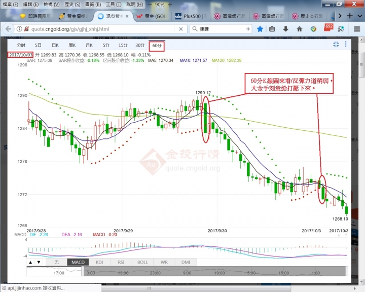 今日日K圖的120MA均線之處的價格=就是1268美元/盎司。