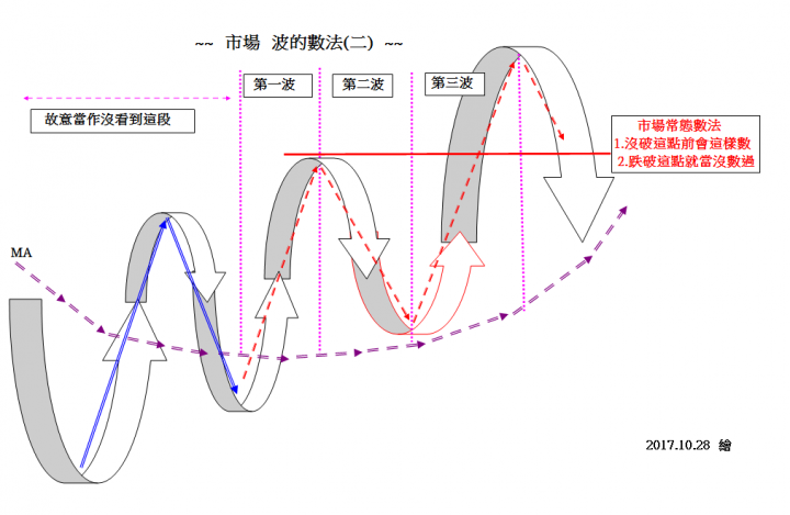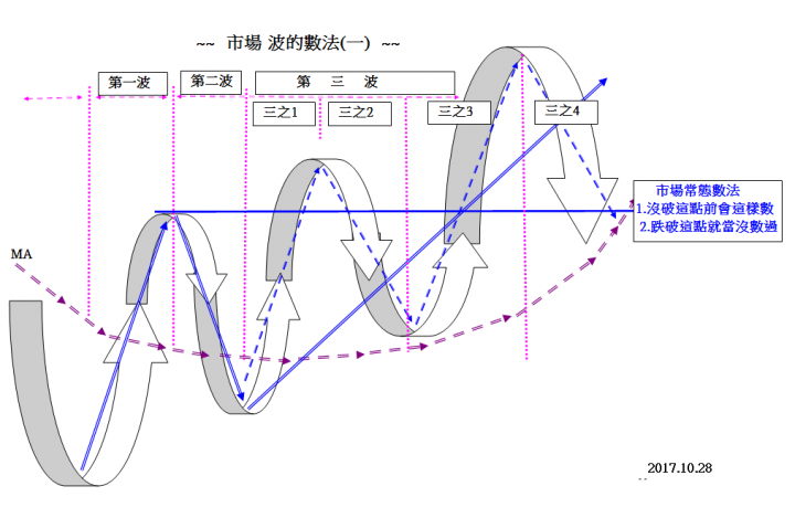 在波浪的數法中需以 均線 套 均線 方式才可看出 波中有波 的現象