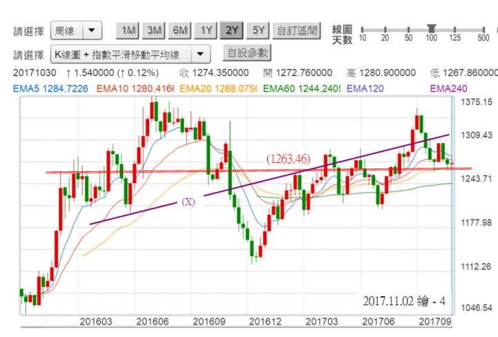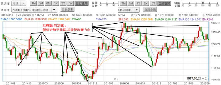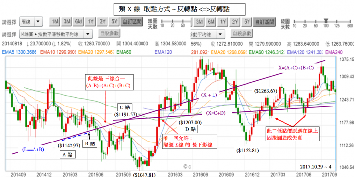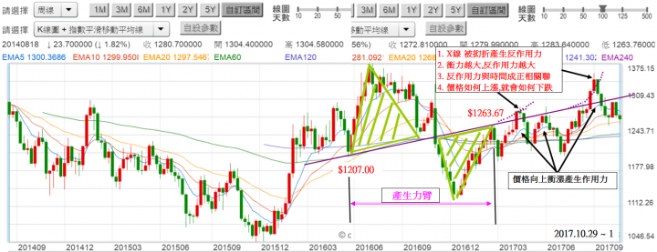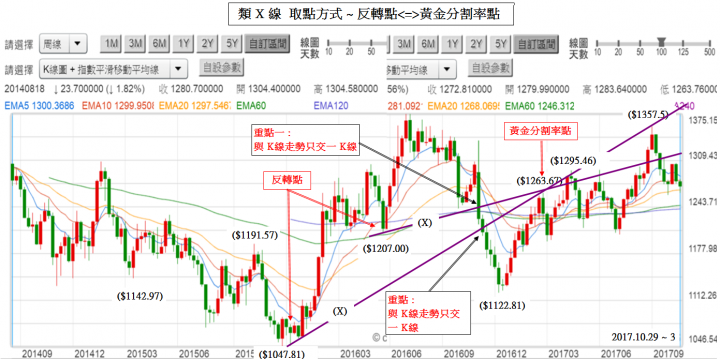 價格 皆會對 X線 成 往復多次衝點(每個均線圖層陸續衝點)