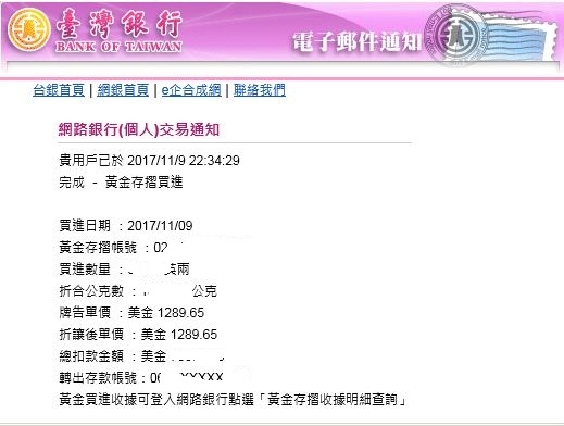 帳戶內的黃金同樣可以去台銀或第一銀行貼手續費換實金