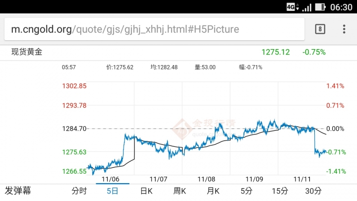 現貨黃金下跌0.7%,報1,275.60美元/盎司,週四觸及10月20日以來最高的1,288.34美元。本週漲0.5%。