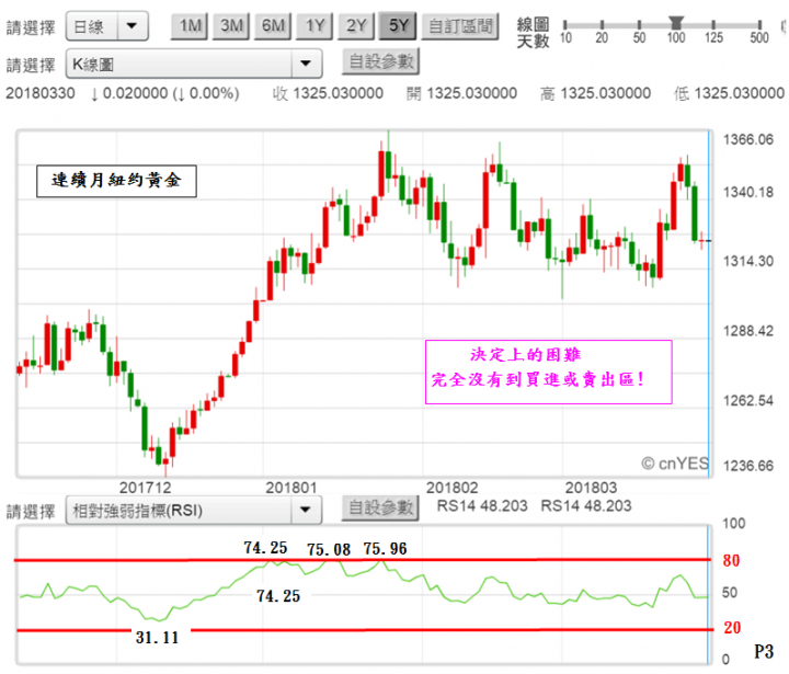3. 圖三(RSI 參數為 14):2018.01.25沒任何買進或賣出信號~產生決定上的困難