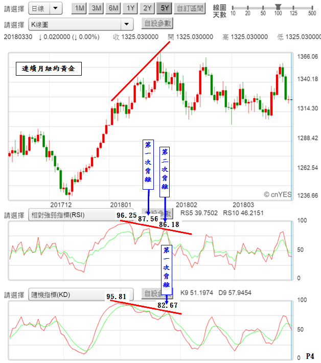 增加一個指標,所以就有 雙指標 的用法,如下圖 P4(RSI Vs. KD)