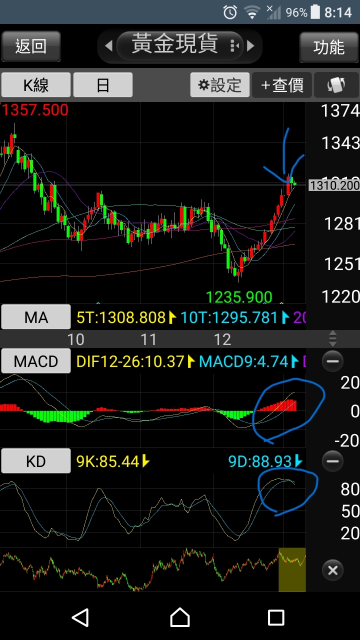 我手上分別進了三個點各5張(我一貫操作策略,分段買,覺得"心情不安"的時候用台幣買元黃金,安心的買點用美金,短期決勝負,閒置的現金改成美元定存來觀望市場)