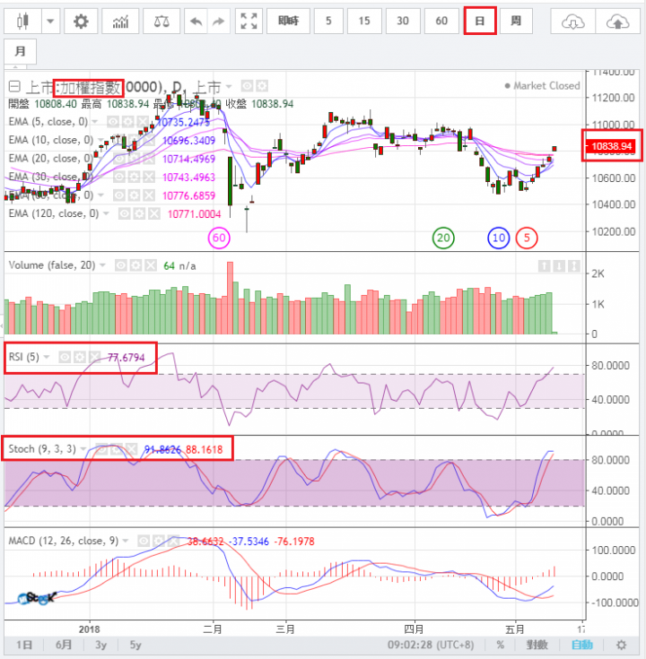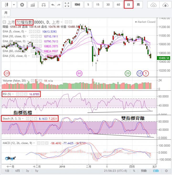 台股日圖指標3x,還有下跌空間
