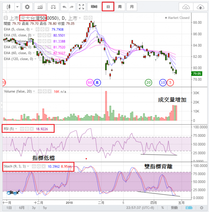 如果跌到這裡,指標已經低檔、背離