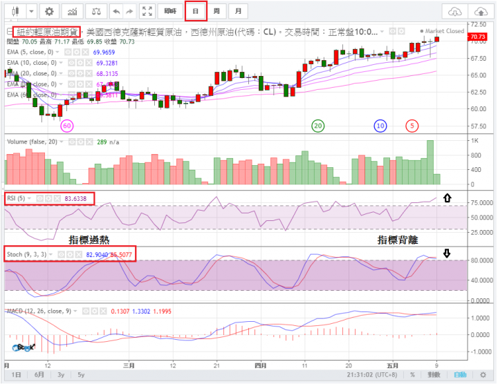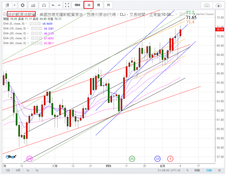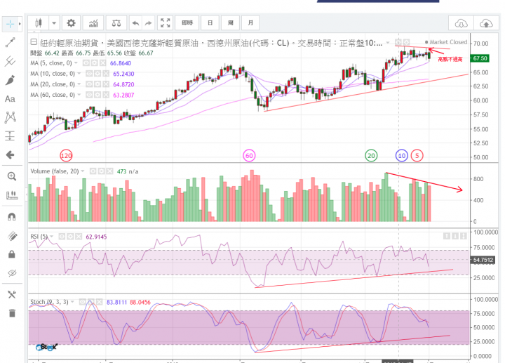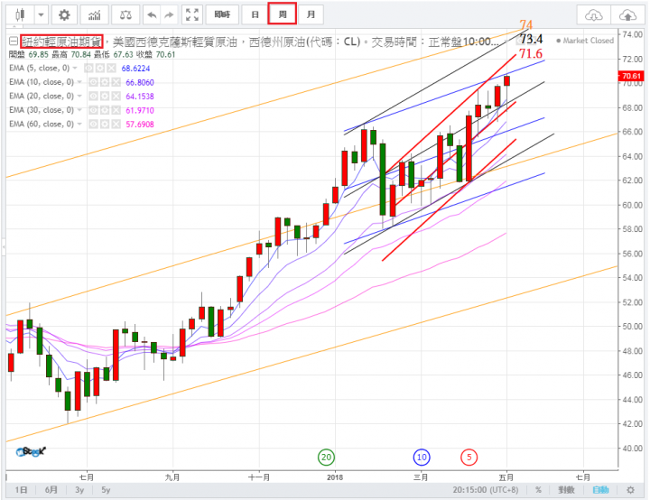 (消息面因目前因美國原油存量比預期少,加上OPEC主要的沙國有意將減產協議延後,可能上漲至70-80)