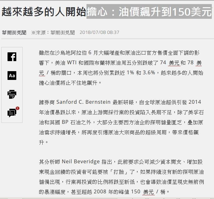 畢竟目前利多的原因較多:夏季用油、美國經濟發展強勢、美股持續上揚、伊朗制裁導致原油輸出不足