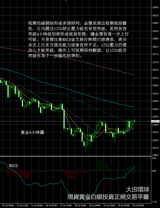 國際現貨黃金走勢分析操作建議7-26丨大田環球