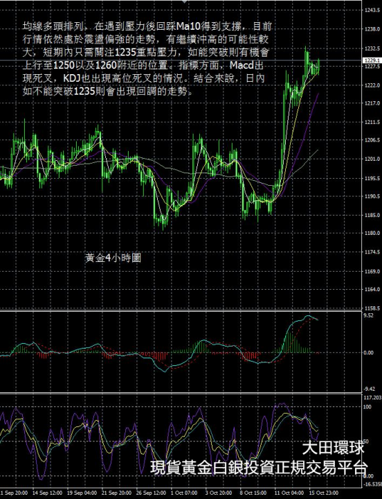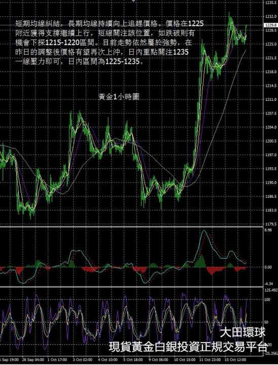 黃金價格10-16晚評國際現貨黃金走勢操作建議丨大田環球