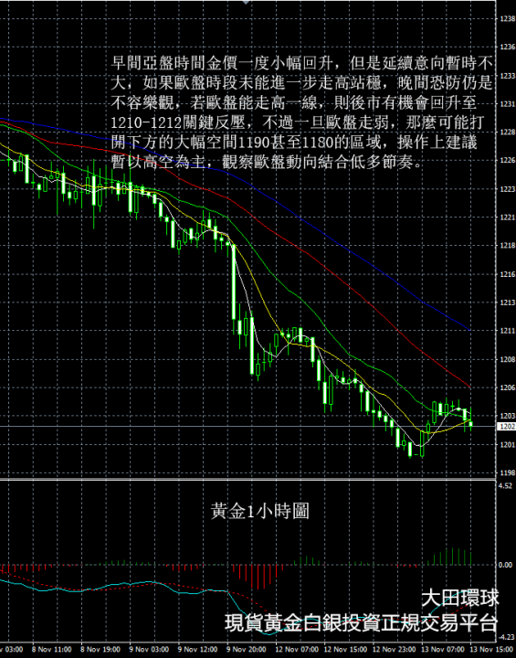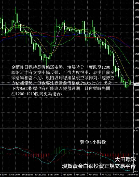 黃金價格11-13晚評國際現貨黃金走勢操作建議丨大田環球