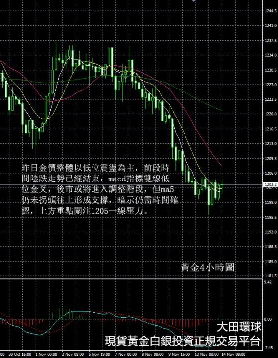 黃金價格11-14早評國際現貨黃金走勢操作建議丨大田環球