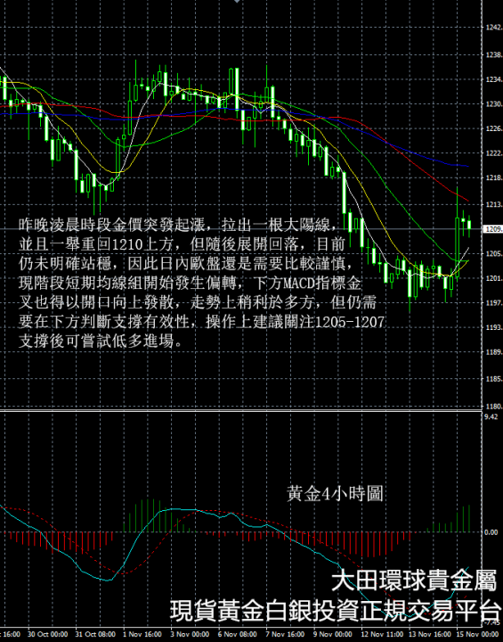 黃金價格11-15早評國際現貨黃金走勢操作建議丨大田環球貴金屬