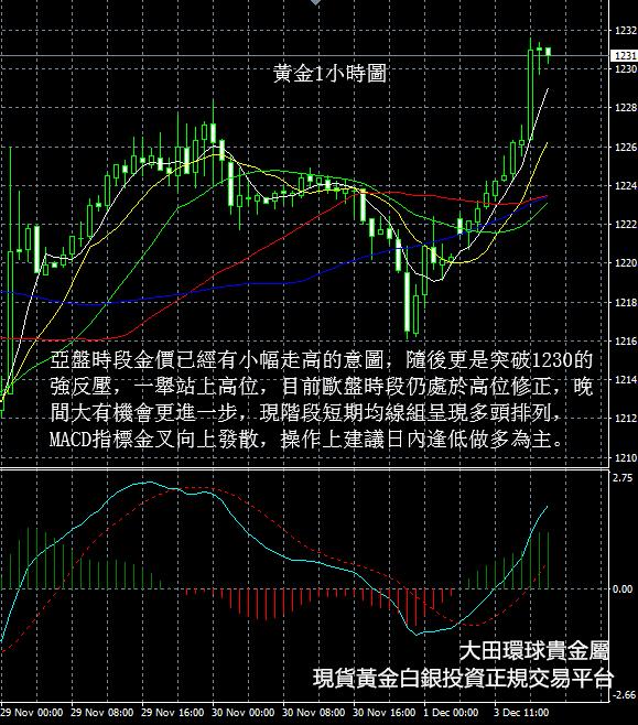 黃金價格12-3晚評國際現貨黃金走勢操作建議丨大田環球貴金屬