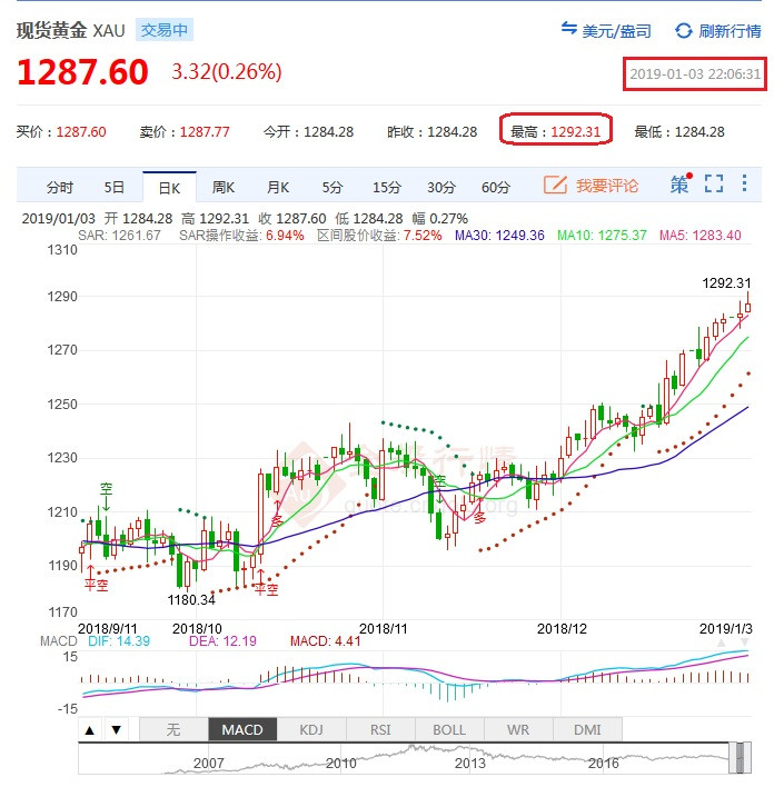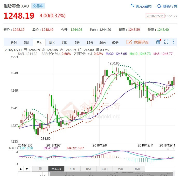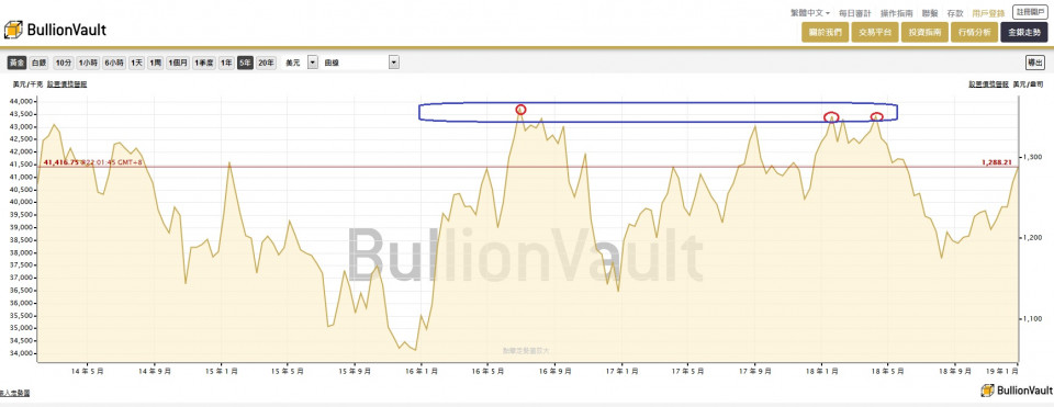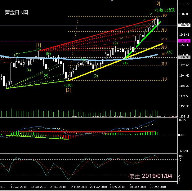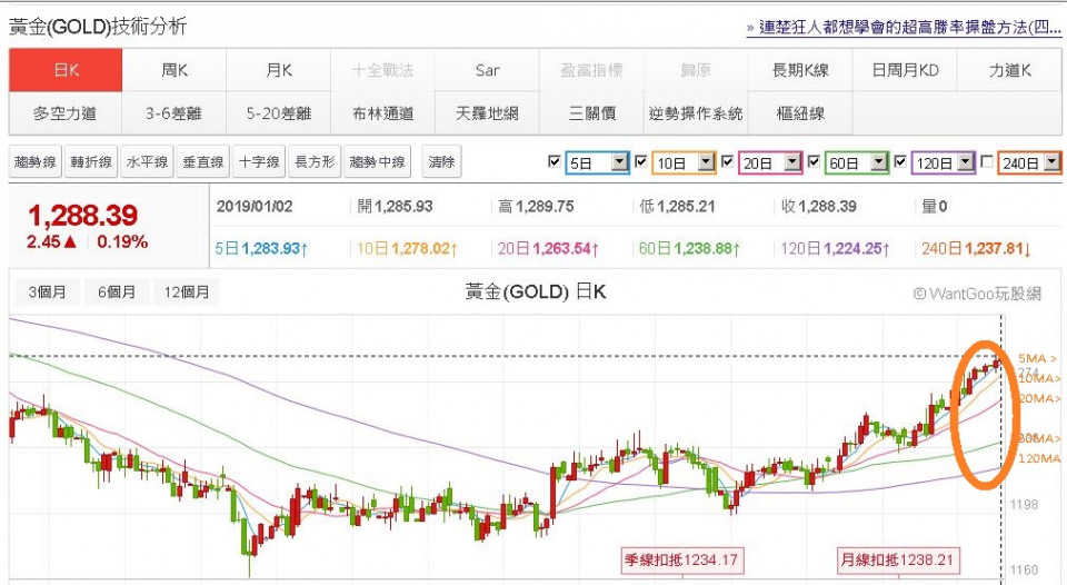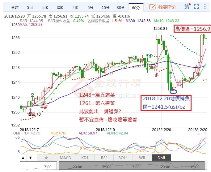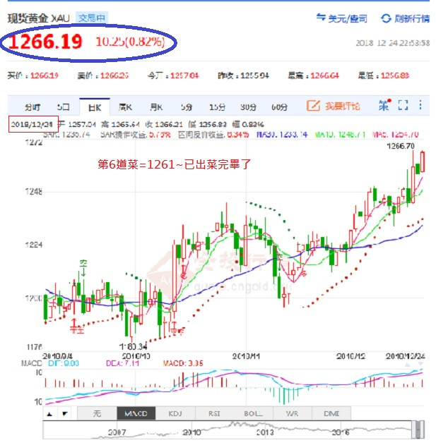 由2018.10.10雙十節時的1183.10美元/oz(金盤價)至近日2018.12.10的1250美元/oz(金盤價)=黃金大盤已經出了第五道菜完畢了.