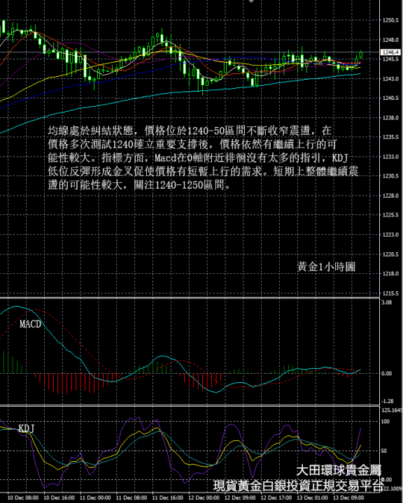 黃金價格12-13晚評國際現貨金走勢丨大田環球貴金屬