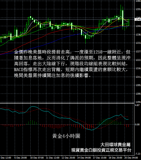 黃金價格12-20晚評國際現貨黃金走勢操作建議丨大田環球貴金屬