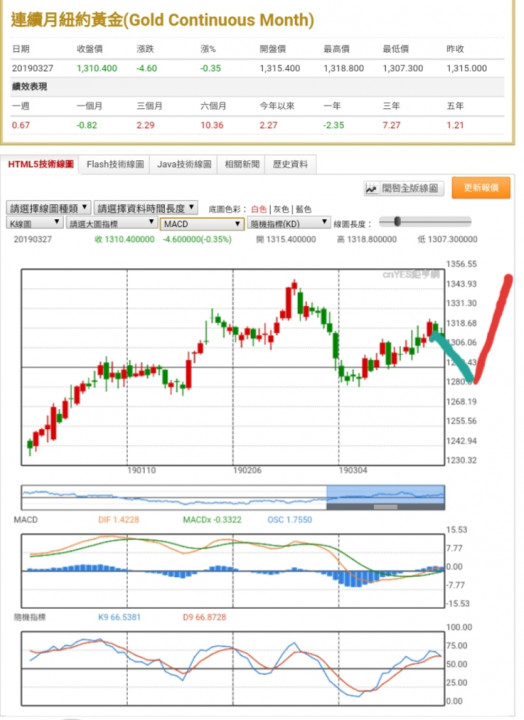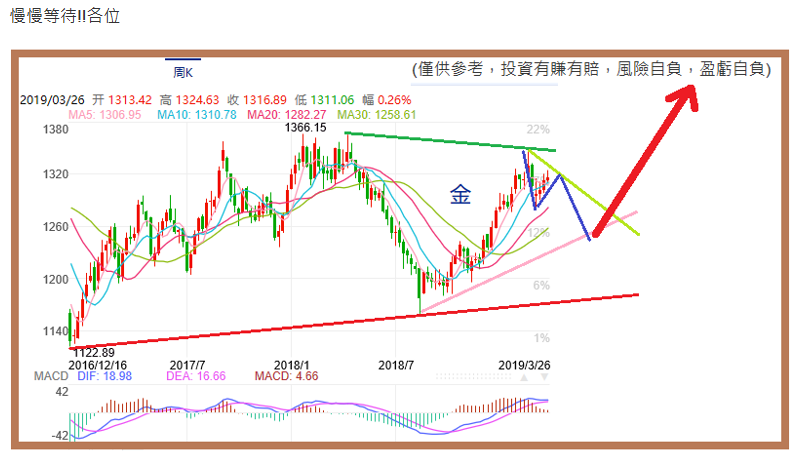 黃金現在1319美元=(臺幣1311元)算中高價位了。