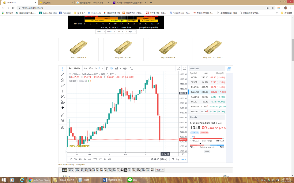 黃金重挫並非基本面不佳,只是被鈀金帶著跑(連續二日重挫100點以上);若明天開盤黃金繼續被鈀金帶屎重挫,要先認賠殺出,待低點再買回才是上策