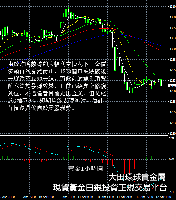 黃金價格4-12晚評國際現貨黃金走勢操作建議丨大田環球貴金屬