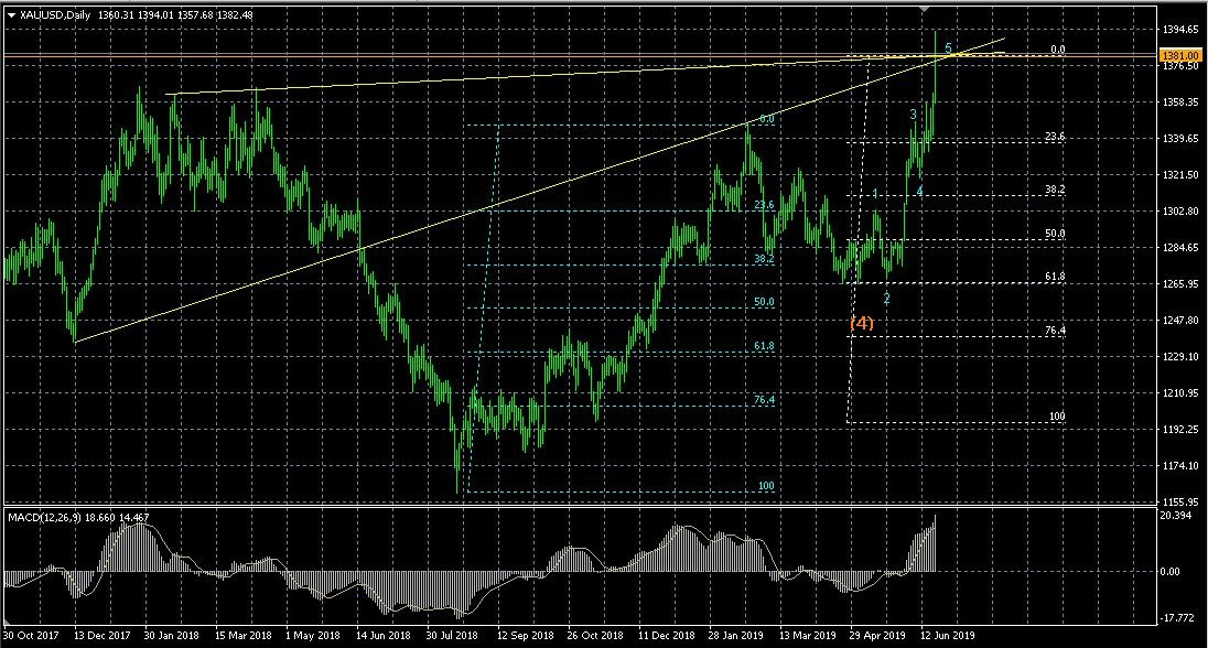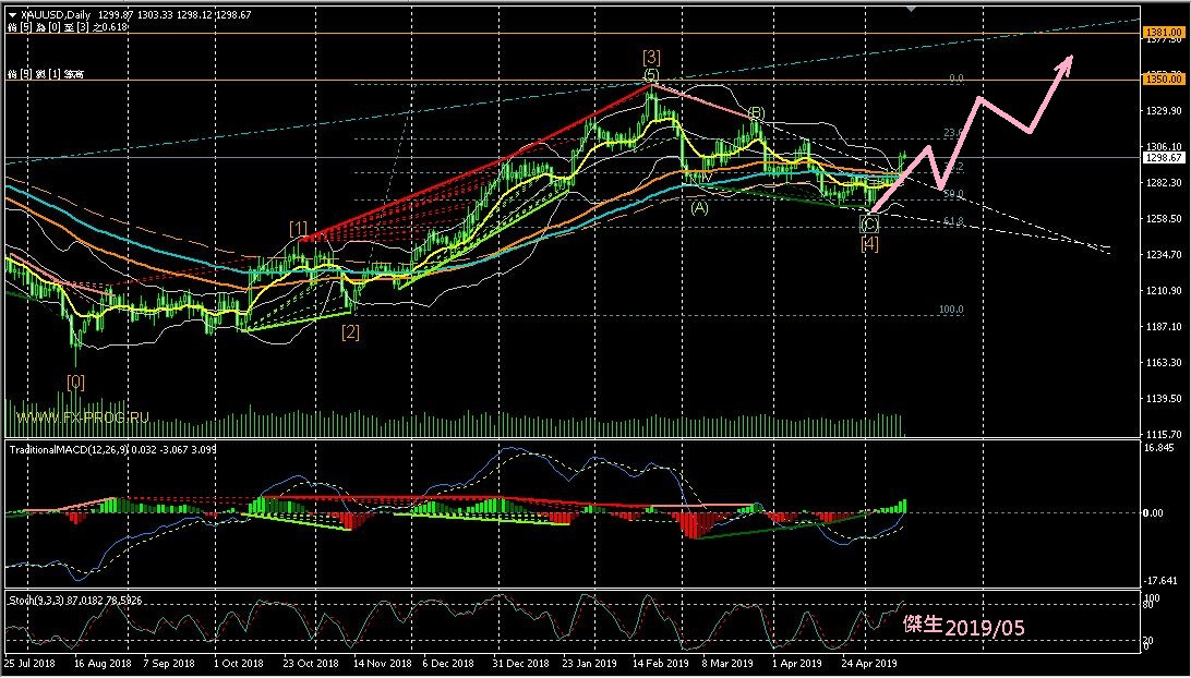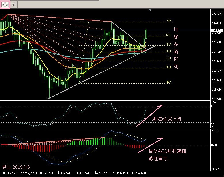 (1) 今天(6/4)金價已漲破前高(1303.33,1310.57,1324.51) ,