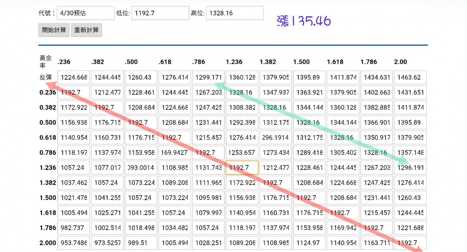 本波由1192.7起漲,漲到1328.16,共漲了135.46點