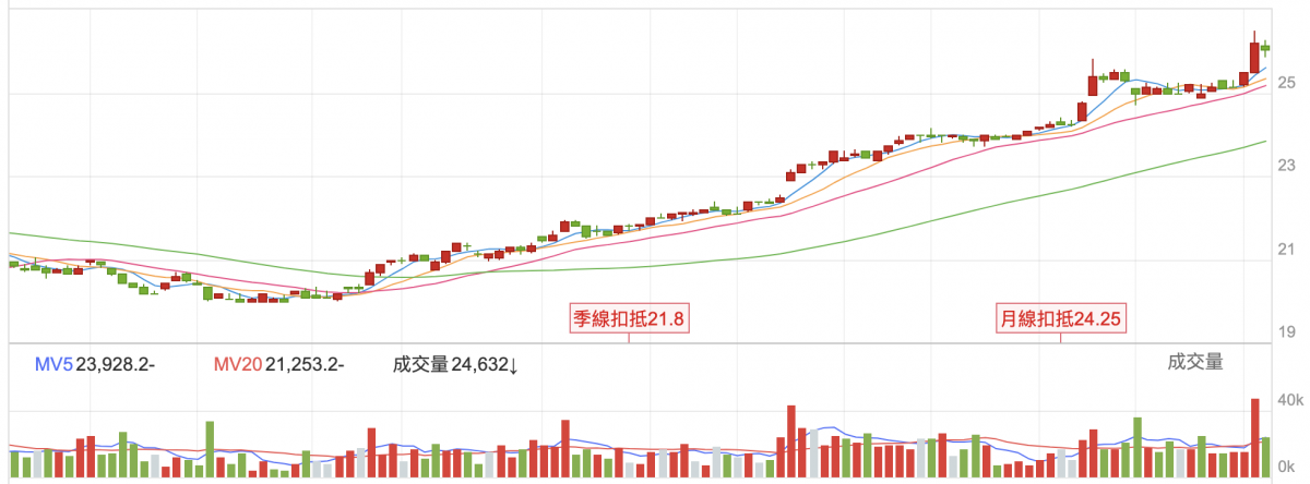 從 17 塊左右開始存這檔股票... 存了兩年現在來到 25點多塊