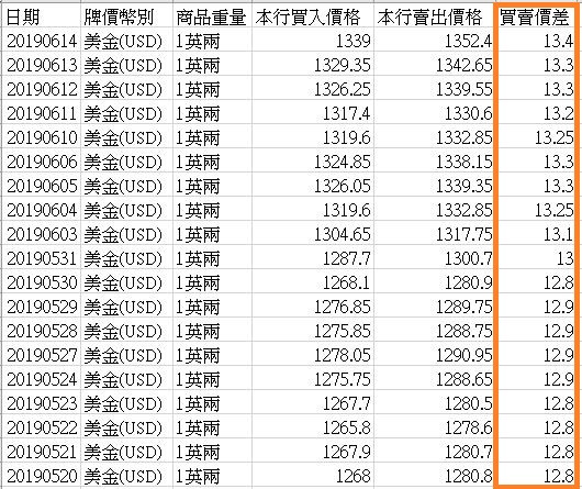 若以3%報酬率美元計價黃金存摺來說,(1304*1.03)+12=1355.12