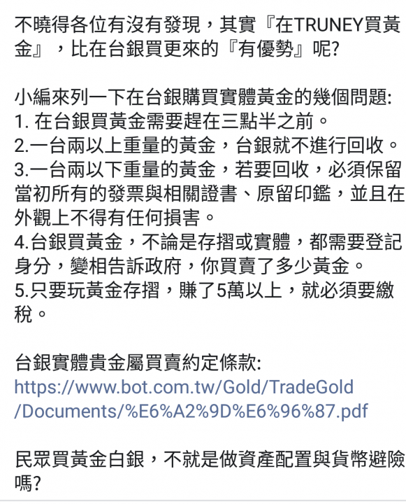 回覆 老頑童PK:台灣銀行黃金條塊之主要供應商為瑞士銀行 ...