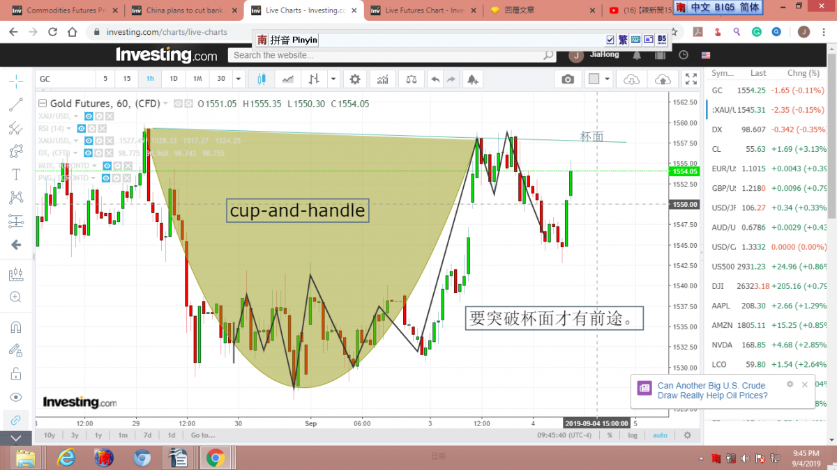 看了一下圖形,沒想到回探的這麼深。好在沒有破上次的跳空缺口,局勢還OK。建議保守些,等站上$1548或1550(現貨)再說。如果局勢真好,也不必在乎這兩三塊錢。[僅供參考,呵呵。]